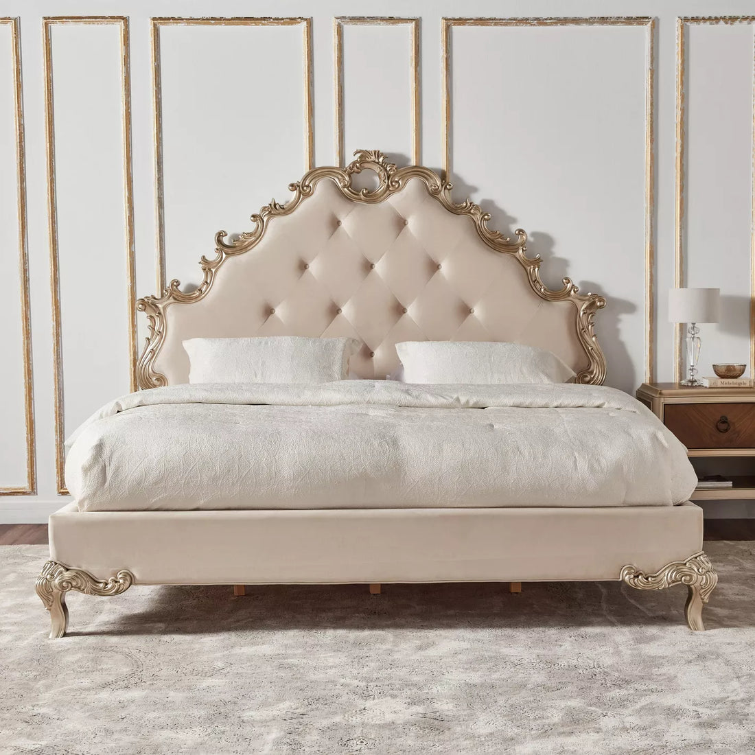 Step into elegance with this classically carved upholstered bed. Graceful scrollwork and rich wood tones bring...