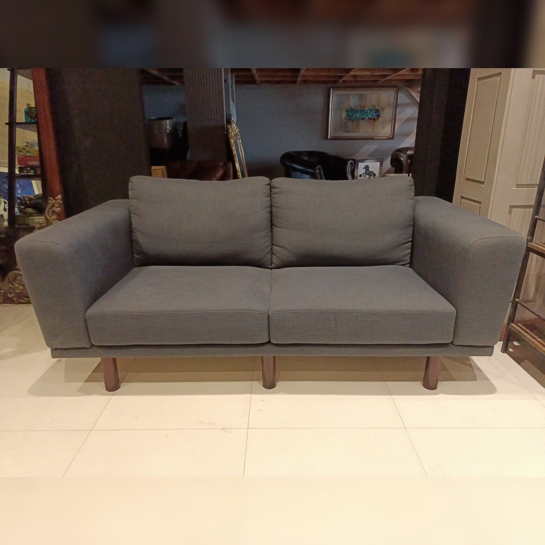 A sleek, Sofa designed for modern living spaces. Upholstered in soft grey fabric with plush...