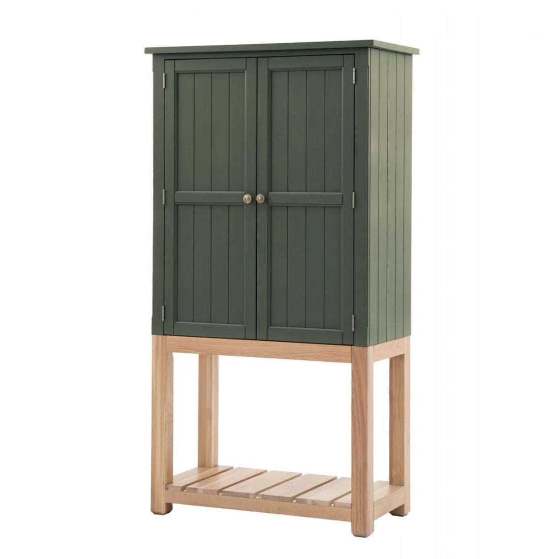 This rococo-style cabinet exudes antique charm with gold-painted floral designs. The soft mint tone complements...