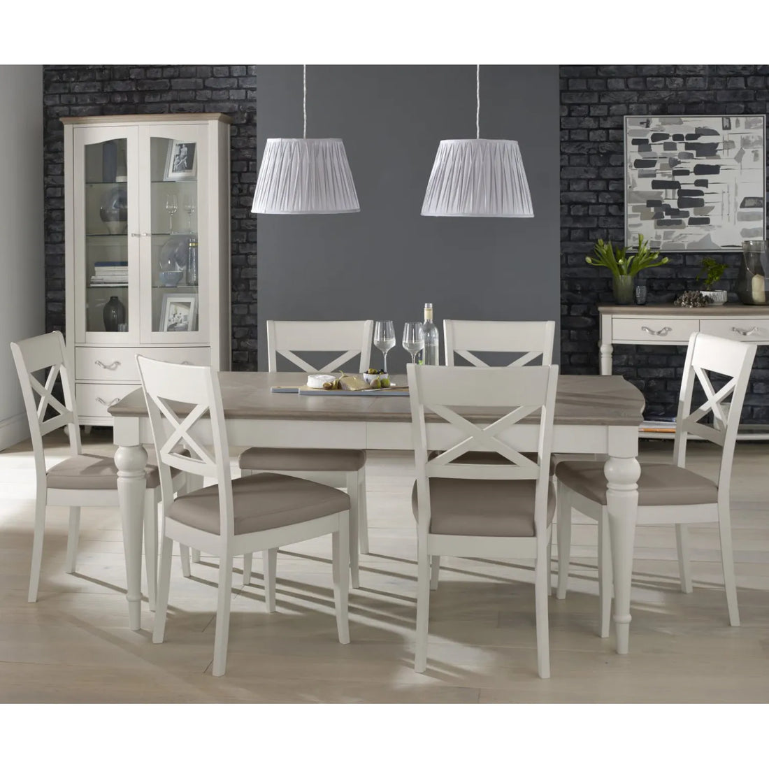 6 Person Dining Table Set This farmhouse-style table features a two-tone finish—weathered oak top and...