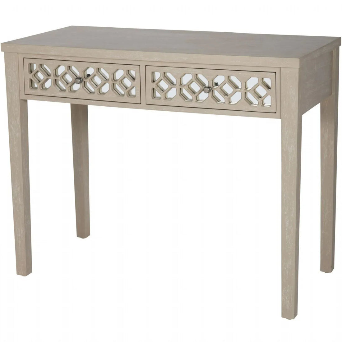 This console brings artisanal charm through its intricately carved drawer fronts, featuring an interlocking circular...