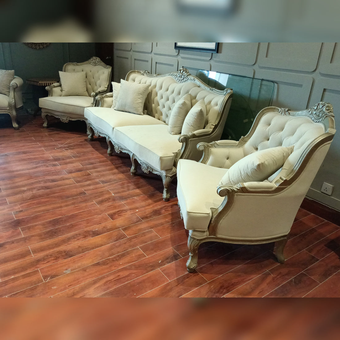 Carved Traditional Cream Sofa (5 Seater)