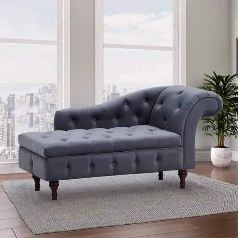 Charcoal Velvet Chaise Ottoman
