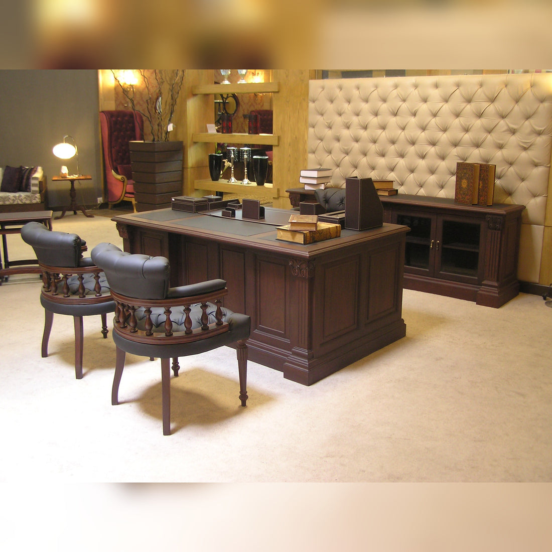 Traditional Paneled Executive Desk in Deep Mahogany