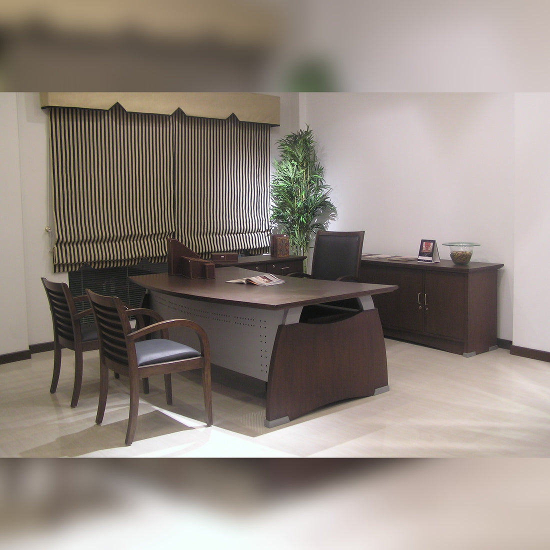 Walnut Executive Desk with Chrome Accents