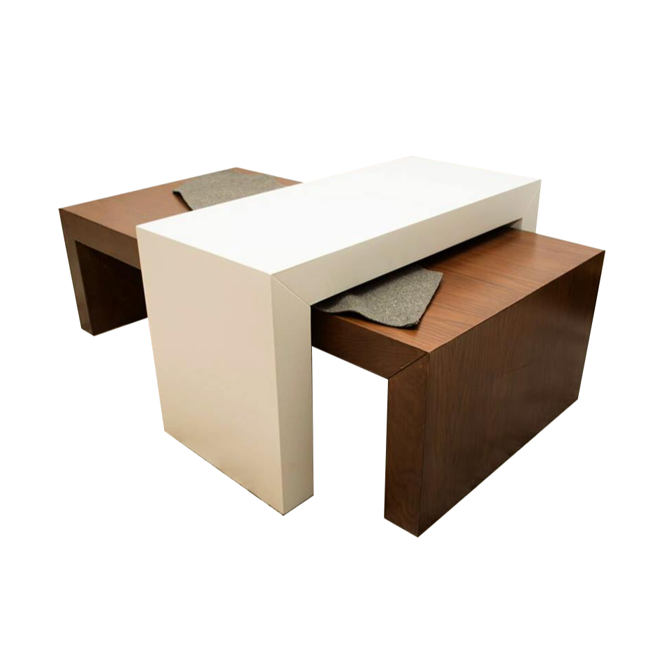 A stunning example of modern geometry, this table showcases an asymmetric layout with multiple interlocking...
