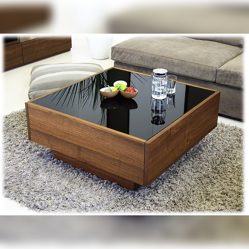 Combining rich wood textures with a sleek black glass top, this cube-shaped table exudes sophistication....