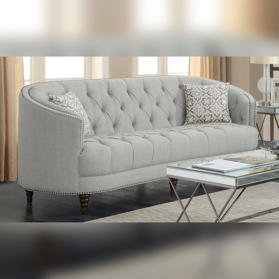 A modern, minimalist take on tufted seating, this sofa features clean vertical tufting across its...