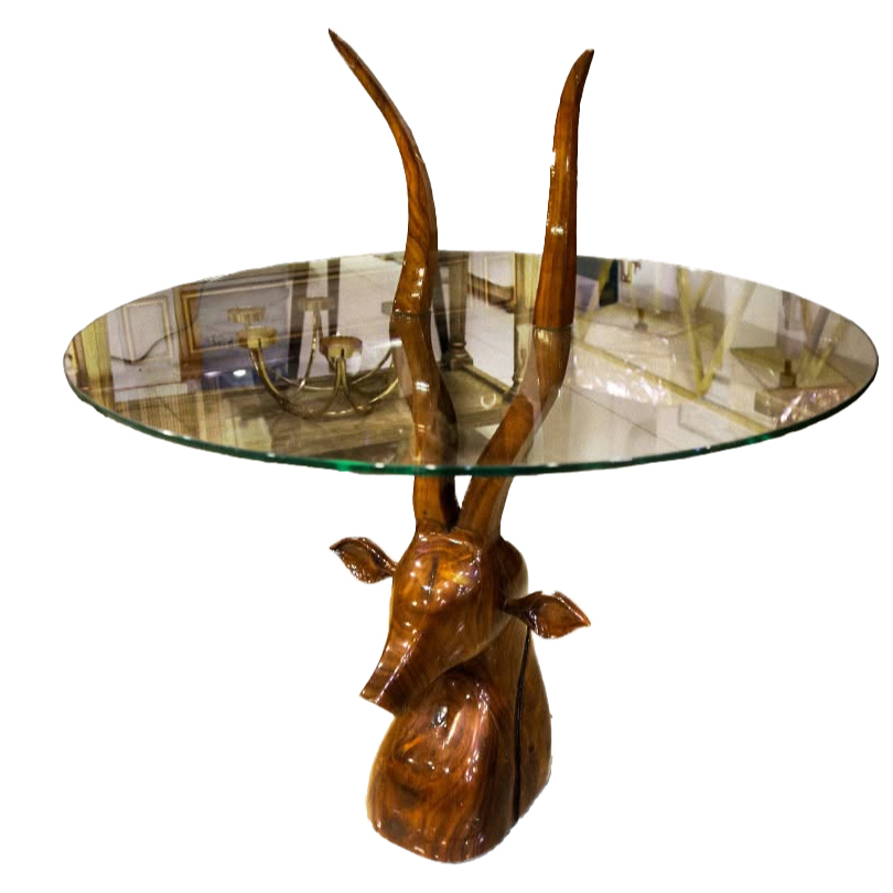 Vintage-inspired design with a polished wood top, elaborate carved legs, and a connecting lower shelf, exuding traditional craftsmanship.