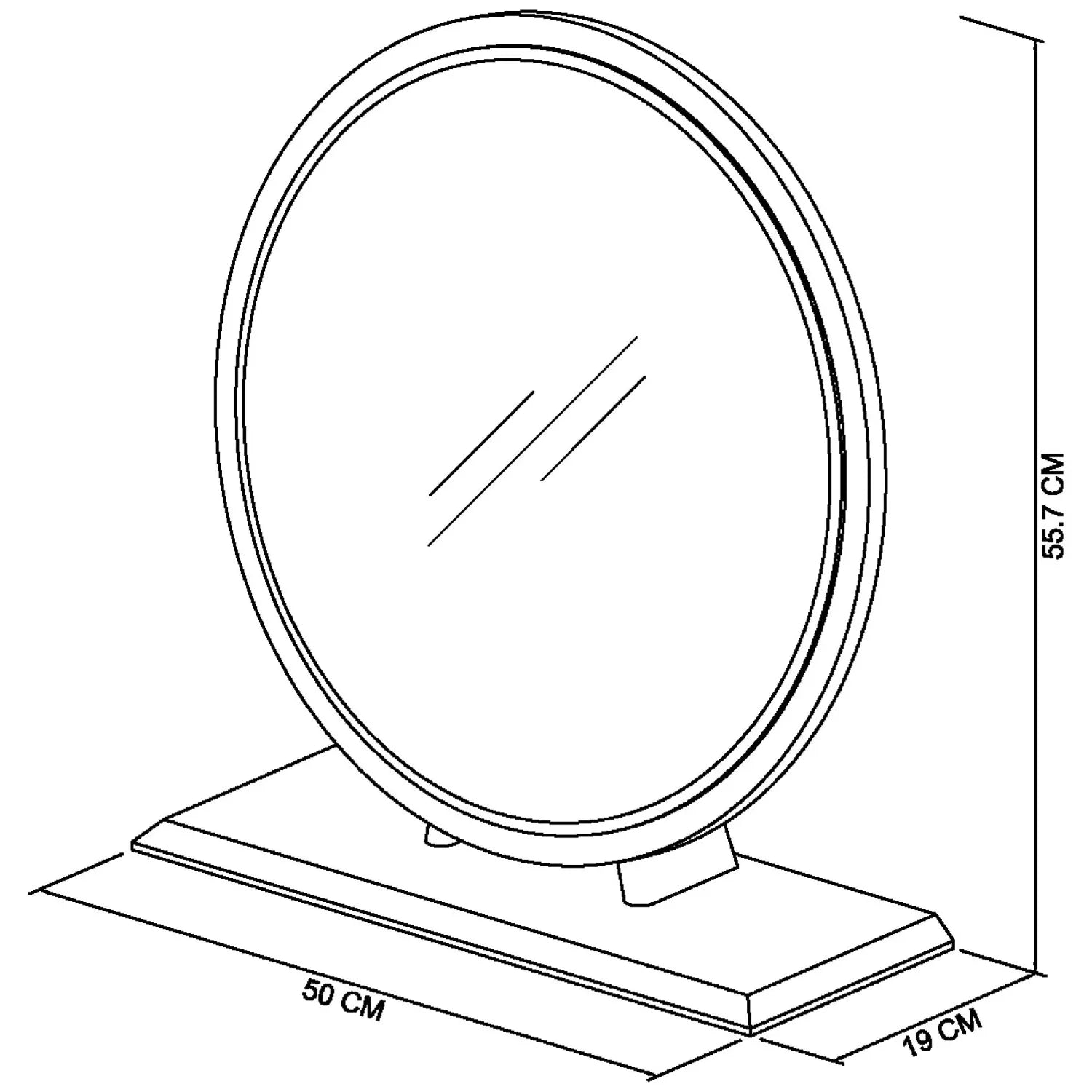 This dressing table showcases a sleek, mid-century modern design with angled brass legs and a matte black finish. The dual-toned drawers with golden handles add a refined contrast and practical storage. Paired with a matching round mirror and cushioned stool, it blends elegance and functionality effortlessly.