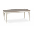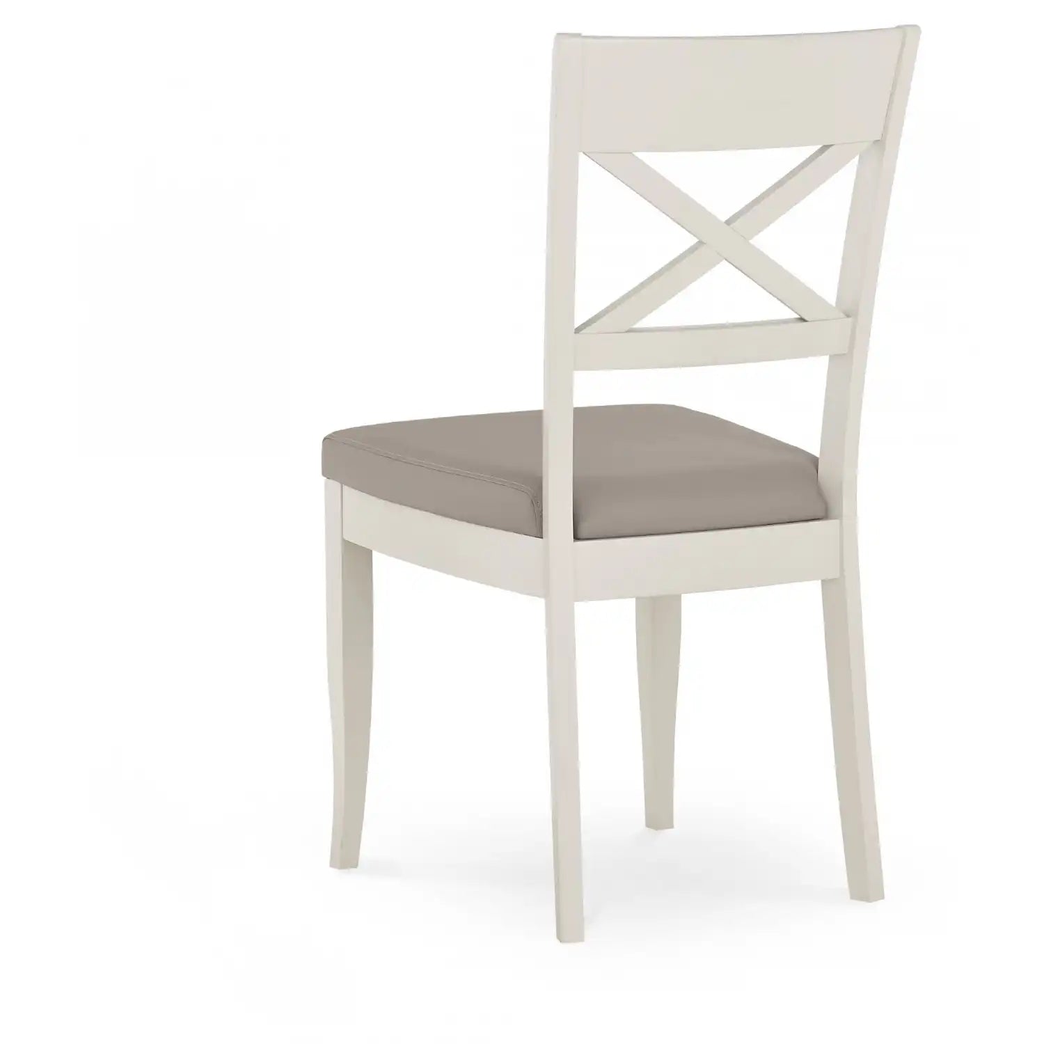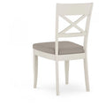 This farmhouse-style table features a two-tone finish—weathered oak top and white turned legs—with matching cross-back chairs. The design delivers a vintage countryside aesthetic with a refined touch. It's perfect for family gatherings in a cozy, classic home setting.