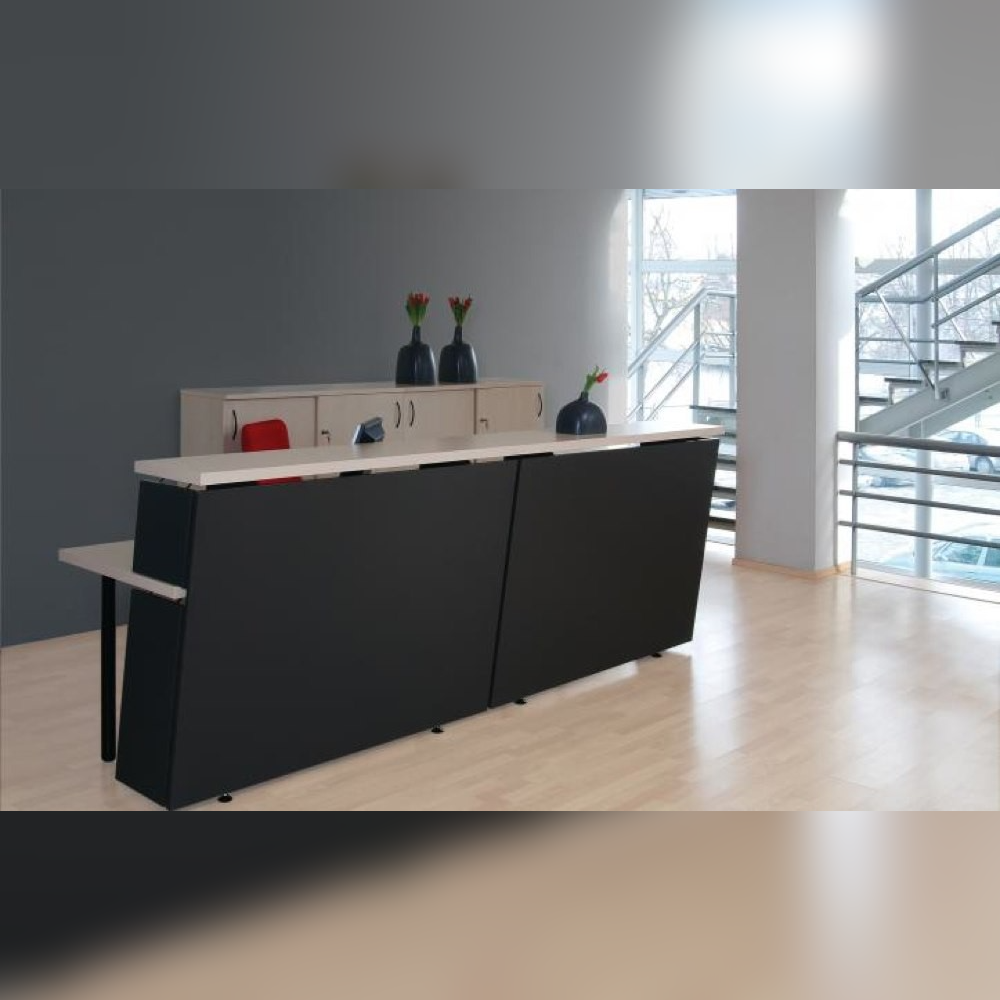 With a matte black body and a contrasting white counter, this piece is edgy and executive. Its angular cut and floating top design offer visual interest and high functionality. Suitable for dynamic corporate spaces and creative agencies.