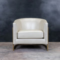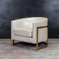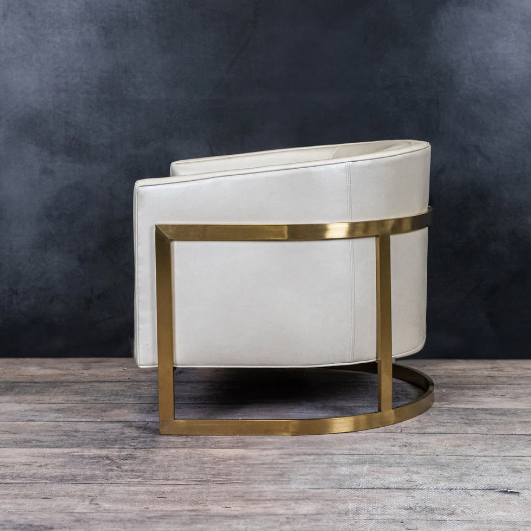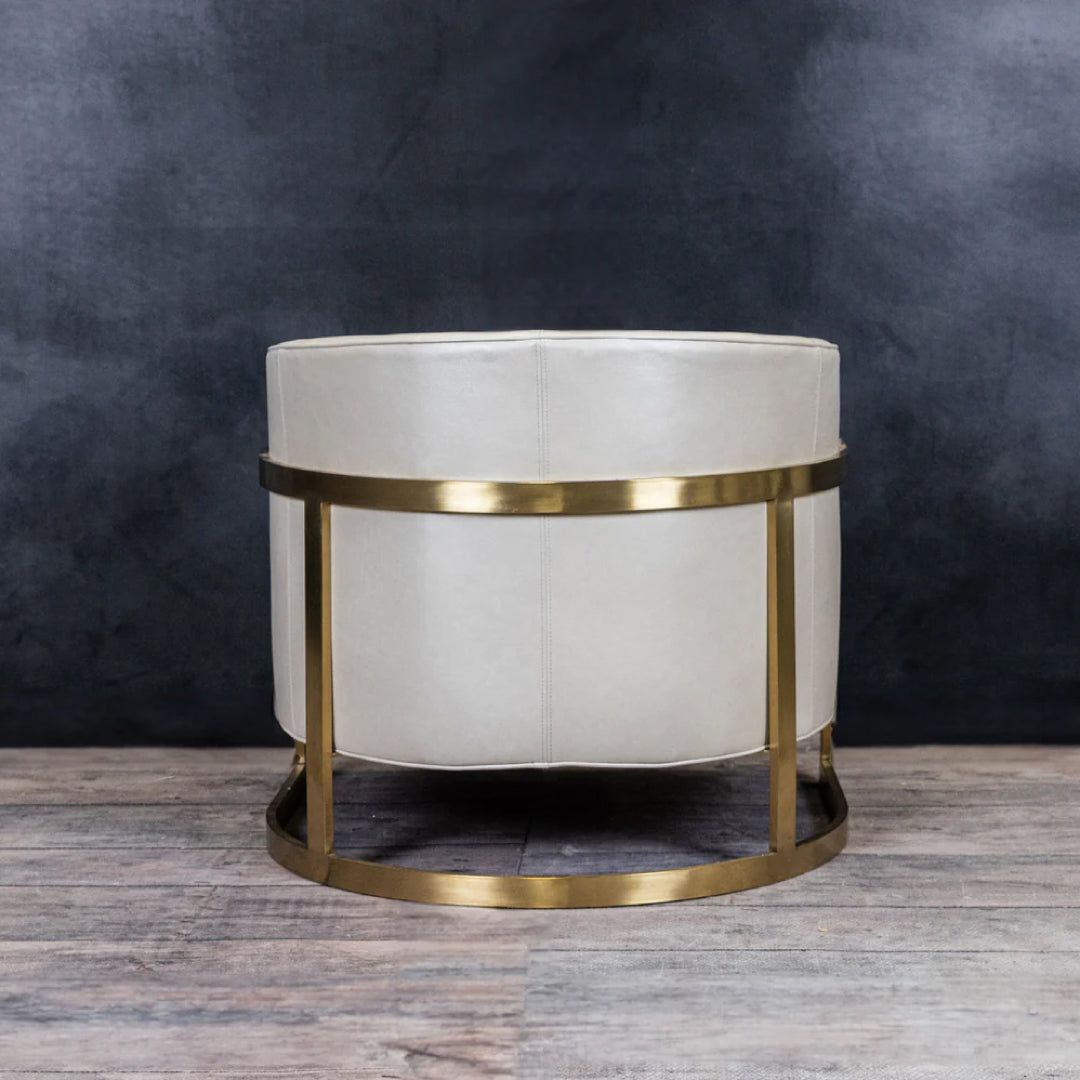 With its rounded shape, brass legs and plush upholstery, this chair provides a cozy spot for reading or relaxing in your bedroom.