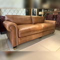 A burnt orange leatherrite three-seater that brings earthy warmth and modern craftsmanship into harmony.