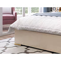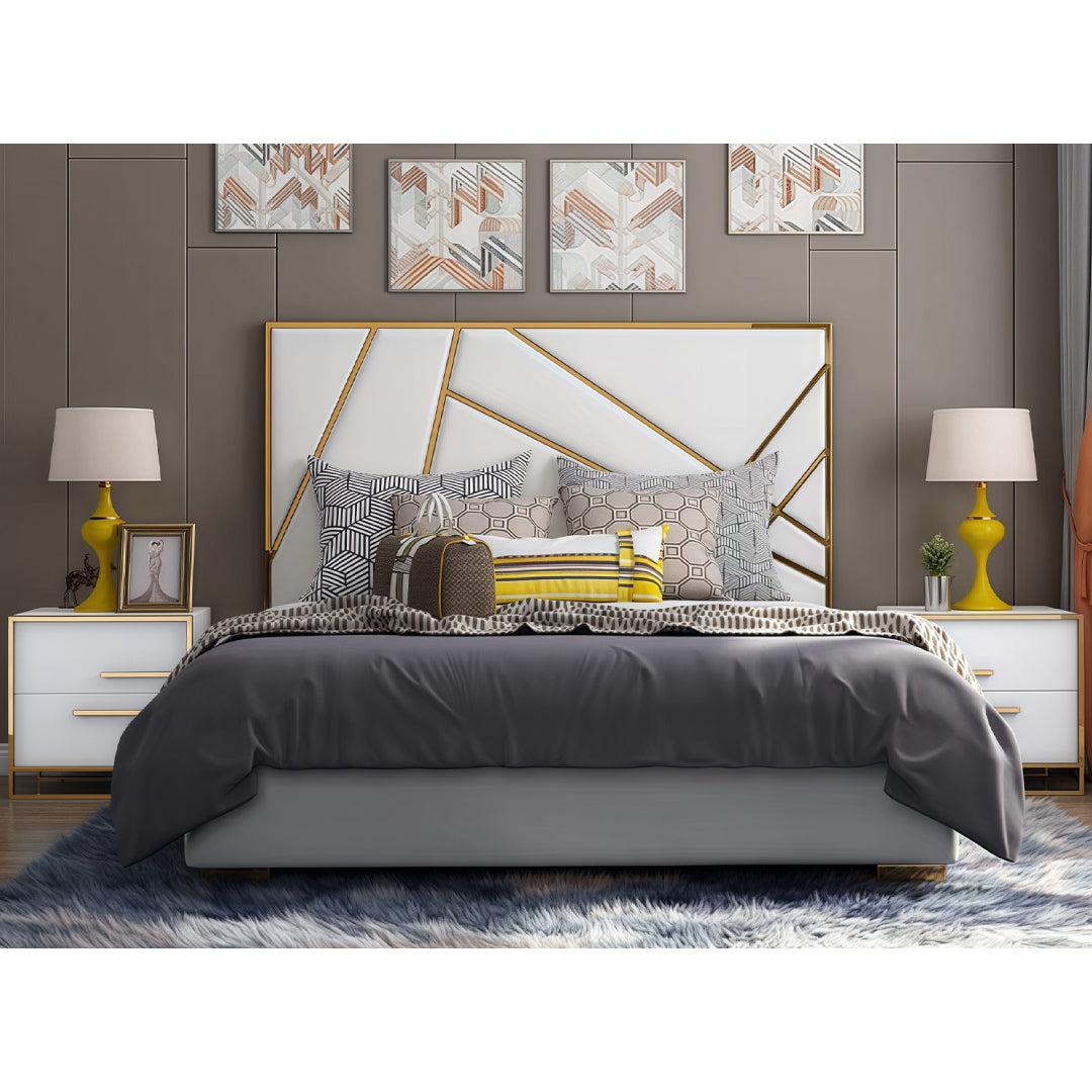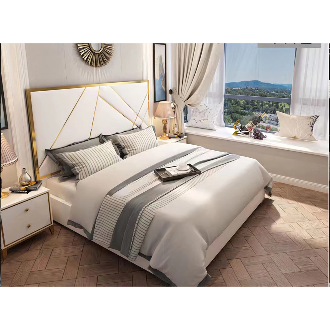 Wrapped in premium fabric and finished with brushed brass lines, this bed redefines modern luxury. The contrast of soft texture and metallic detail creates rich visual depth. Perfect for curated, designer-inspired spaces.