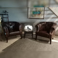 Chesterfield Brown Leather Sofa with 2 Chairs