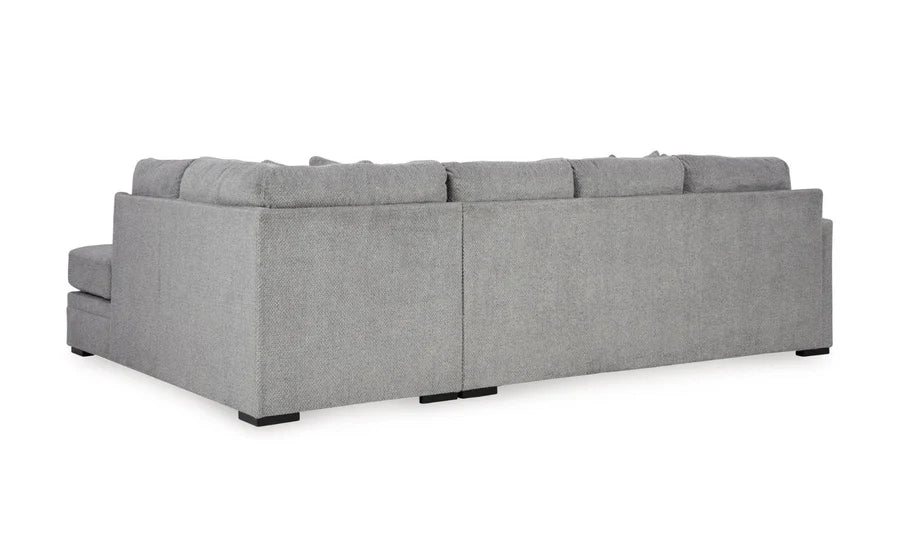 Finish: Heathered light gray polyester with piped edges and plush backrests.