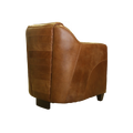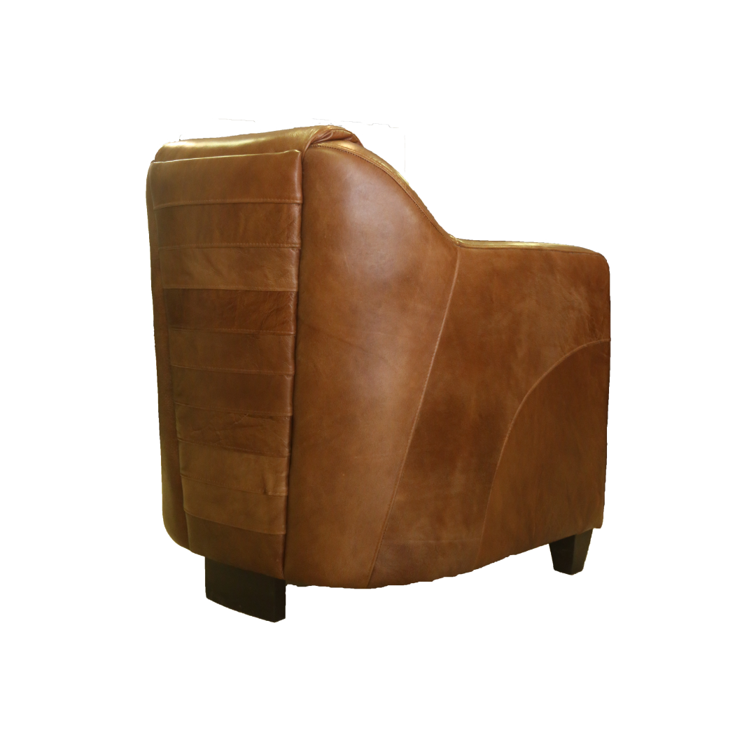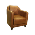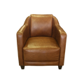 This polished brown leather armchair features curved wooden arms and comes with a matching leather seat cushion. Blending comfort and tradition, it’s ideal for reading nooks or executive offices.