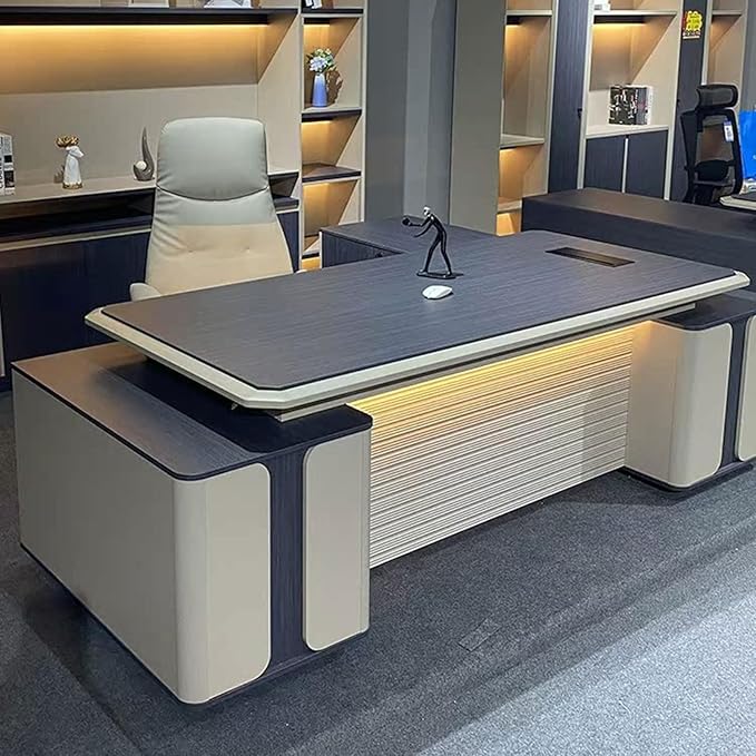 Contemporary Executive Desk in Grey-Wood Finish with Floating Elements