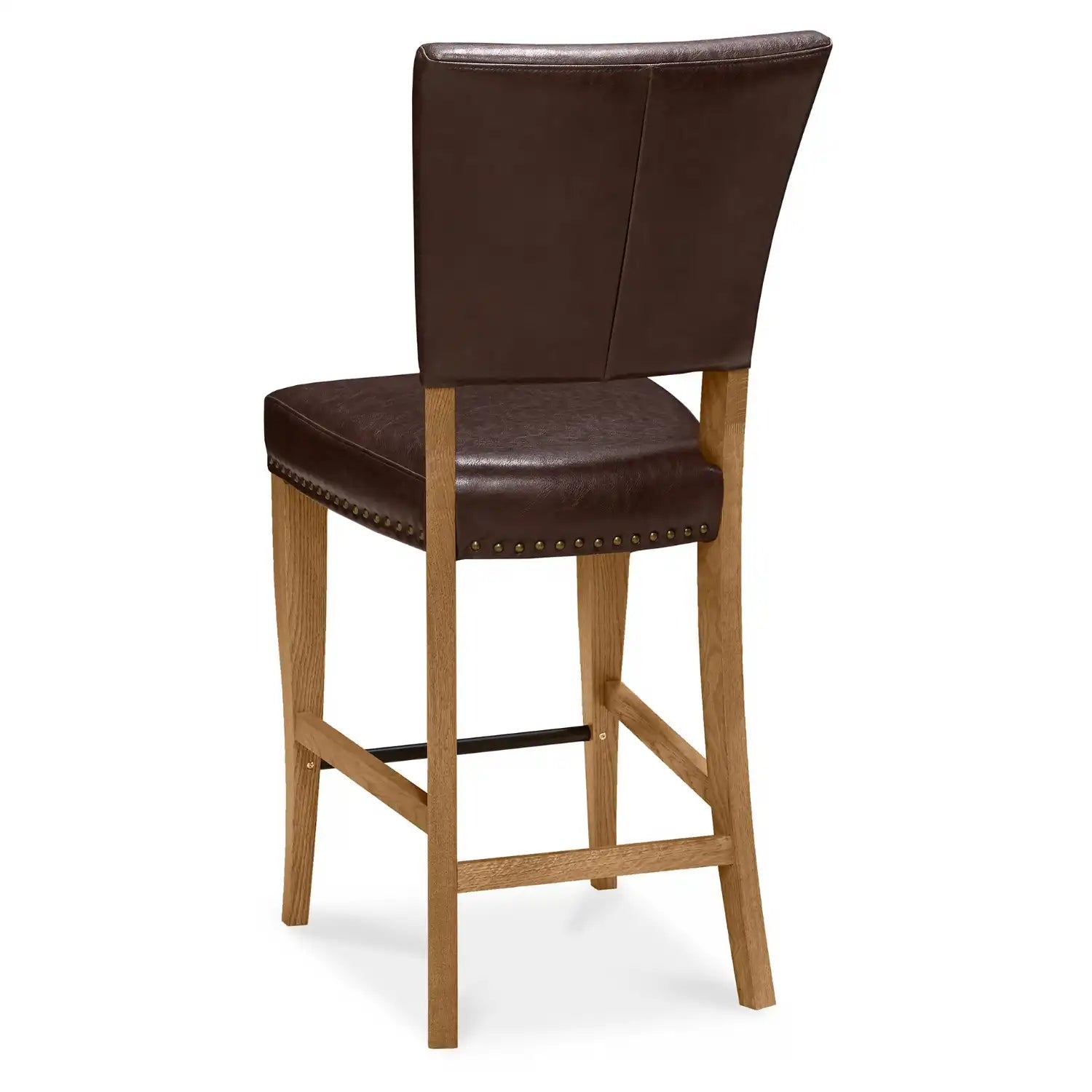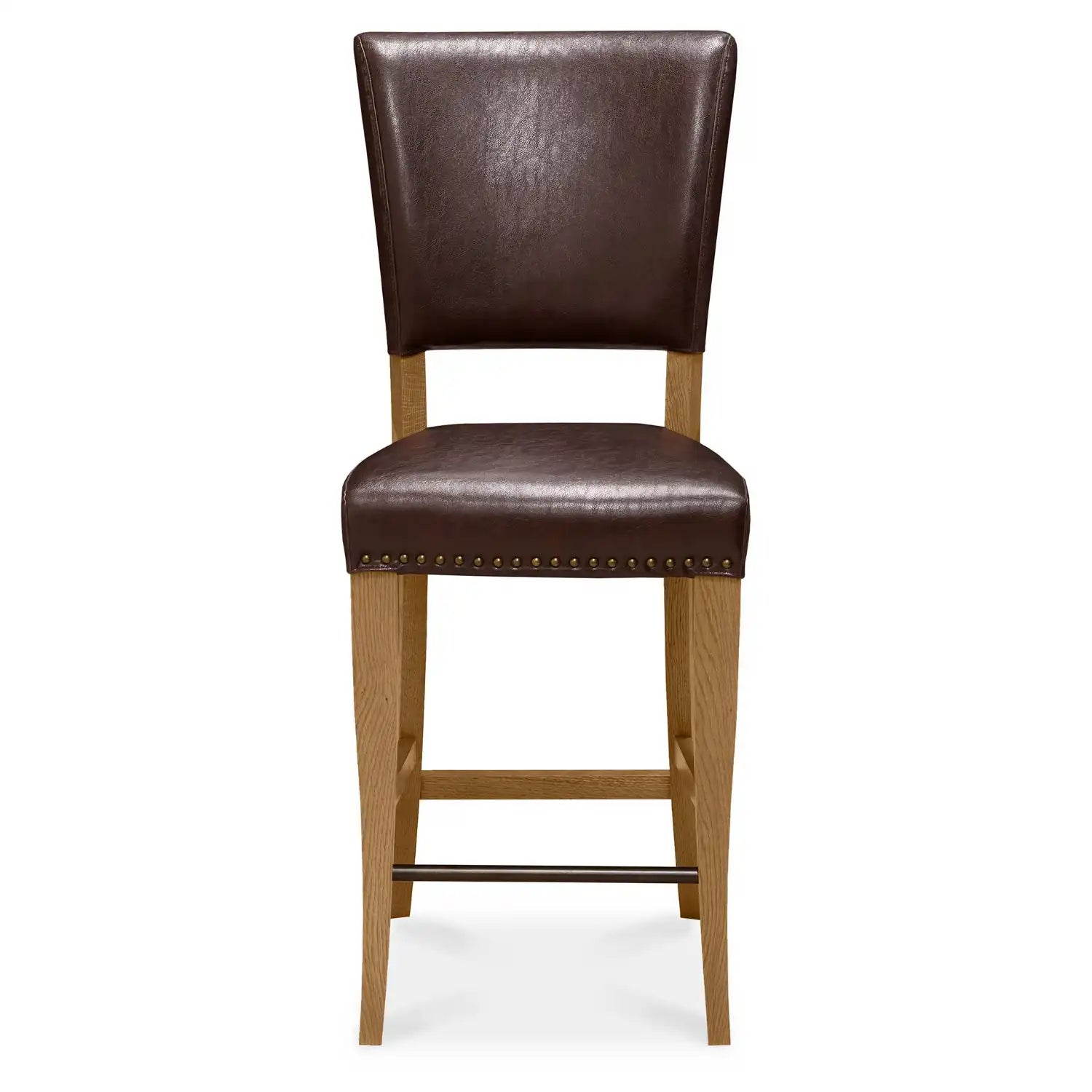 Upholstered in deep brown leatherette, this stool is paired with classic oak legs and a sturdy frame. The combination of rich color and robust form gives it a timeless pub-style feel. Perfect for traditional homes, game rooms, or masculine bar settings.