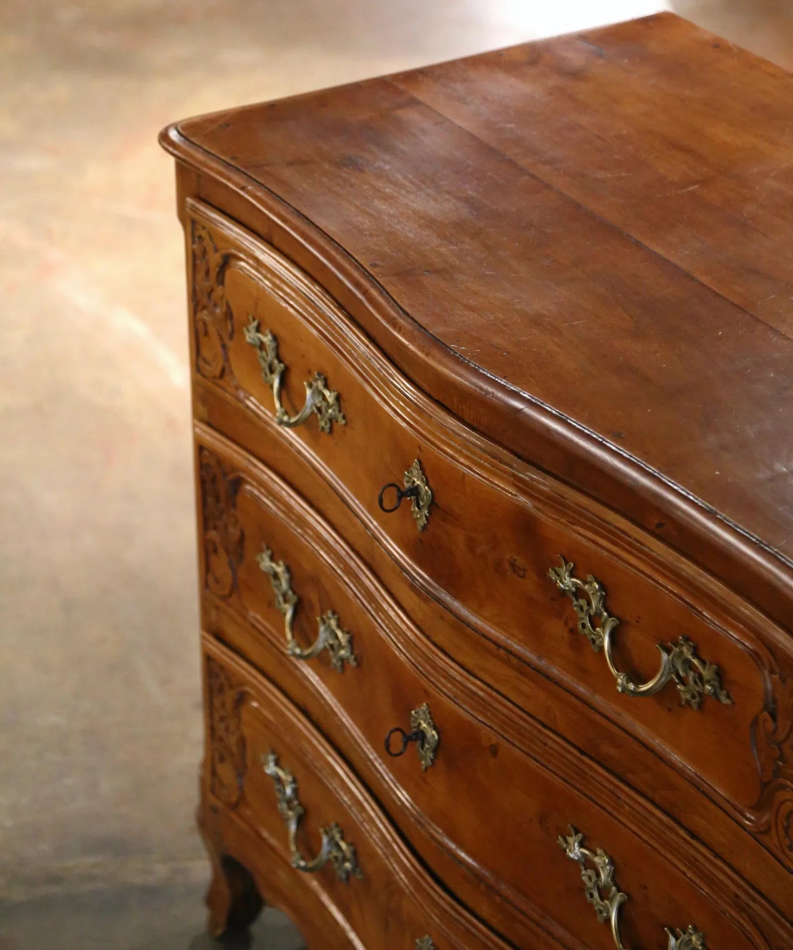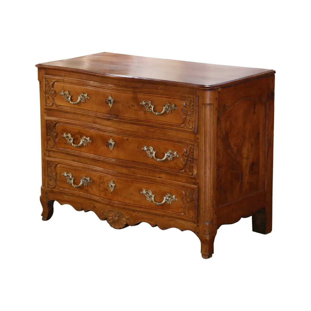 With hand-carved floral vines and a dark brown polished body, this chest exudes old-world elegance. Turned legs and decorative moldings elevate its regal character. Ideal for classical interiors needing storage with style.