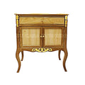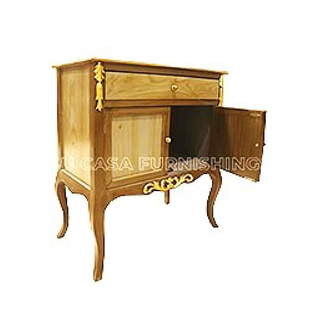 Rich brown polish frames the chest, while floral carvings are elevated with muted deco tones. Subtle touches of green, gold, and cream add vintage charm to its classic silhouette. An heirloom-style piece that brings artistry to tradition.