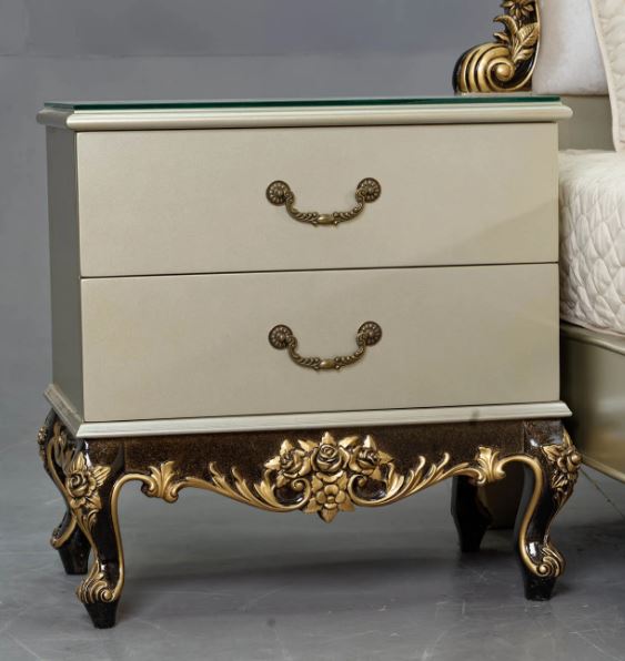 A touch of royalty for your room. Ornate carvings and luxurious finish make this a bedside masterpiece.