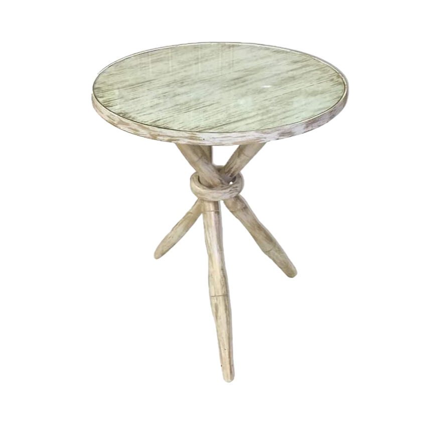 Luxurious round marble top table with slender legs arranged in a crisscross form, offering a chic and elegant look.