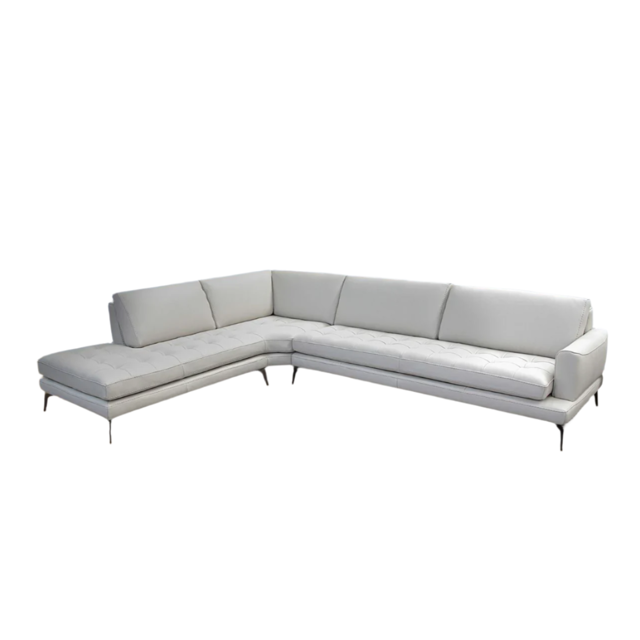 A sleek, minimal profile defines this modern L-shaped sectional with thin arms and a tight back. The clean-lined silhouette makes it ideal for urban or loft-style interiors. Raised metal legs emphasize an airy footprint. Upholstery is smooth and streamlined.