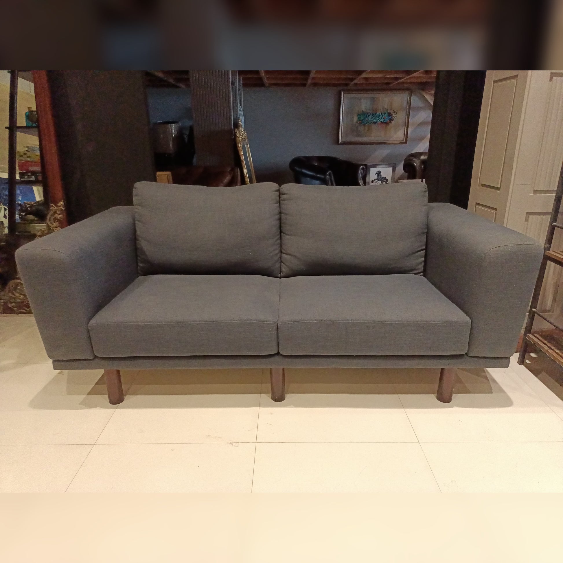 A sleek, Sofa designed for modern living spaces. Upholstered in soft grey fabric with plush cushioning for comfort. Perfect for lounging and hosting in contemporary interiors.