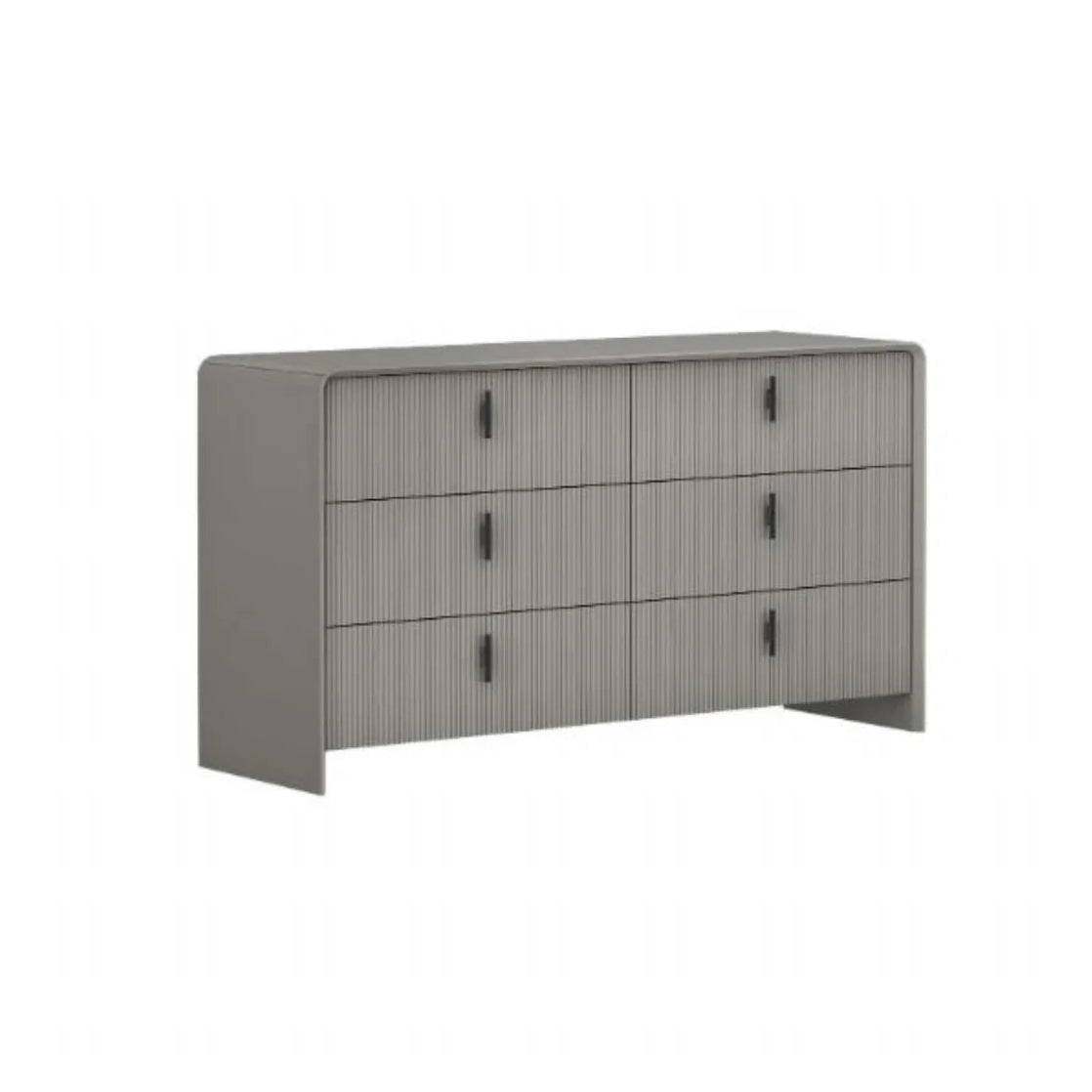 Wide Chest with Horizontal Planks. A low-profile, wide chest with flat plank-style drawer fronts in a weathered wood finish. Seamless grooves replace handles for a sleek, minimalist profile. Great for modern spaces that value earthy textures and hidden functionality.