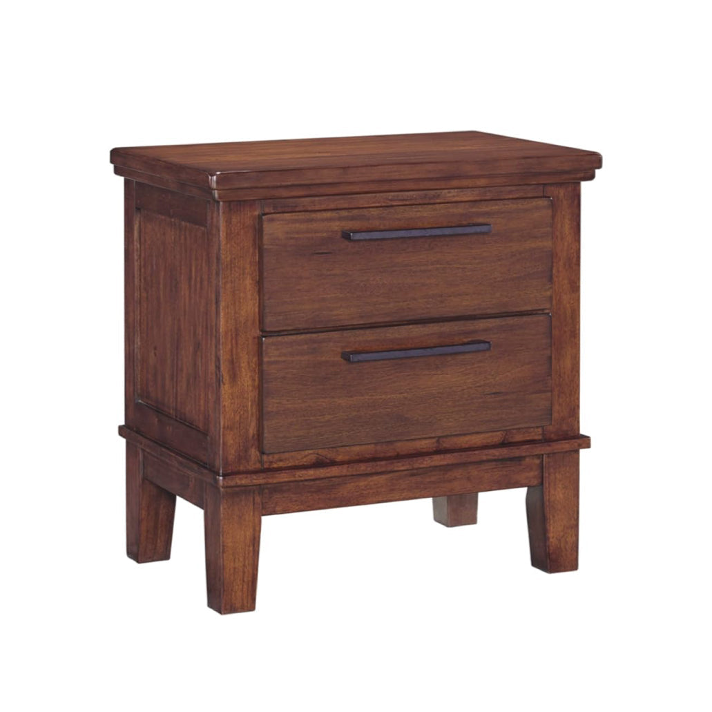 This table features natural wood tones and a clean modern form. A warm, refined accent beside your bed.