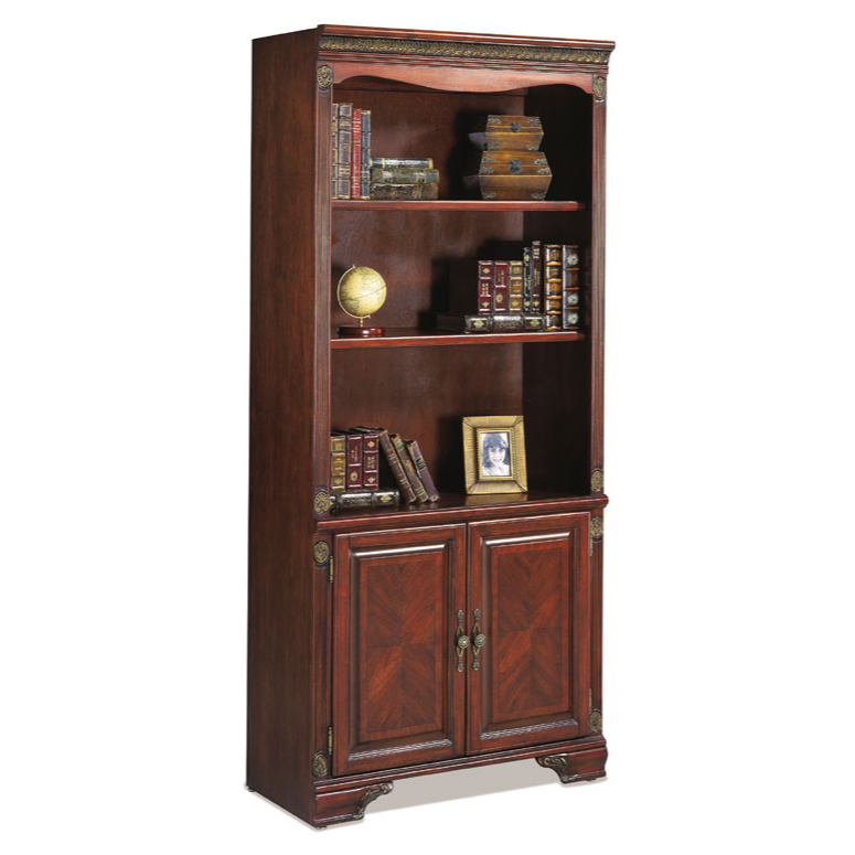 With an arched crown and carved wood detailing, this bookshelf blends utility with artistry. It features open shelves for easy access and lower drawers for organization. Ideal for classic home libraries or elegant office corners.