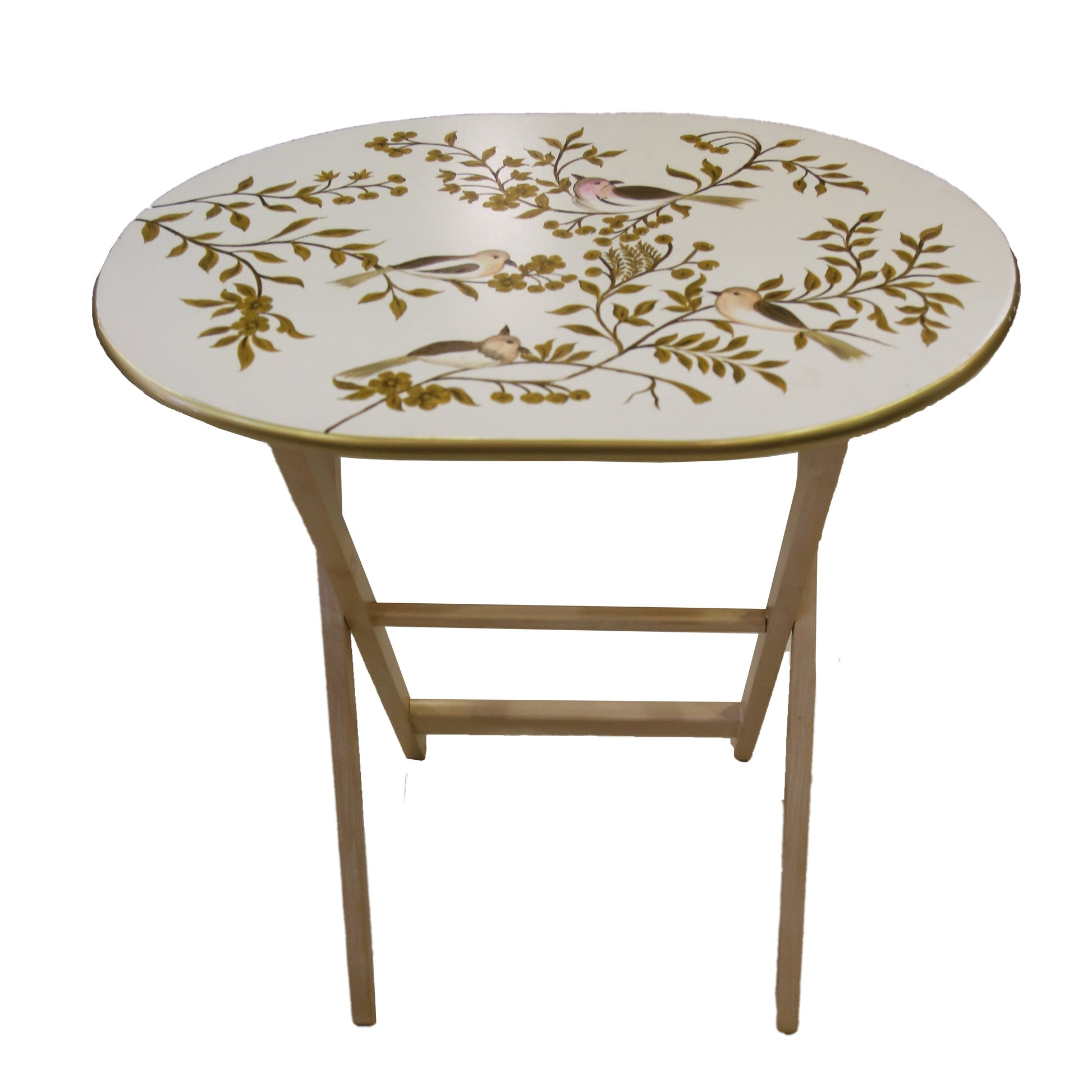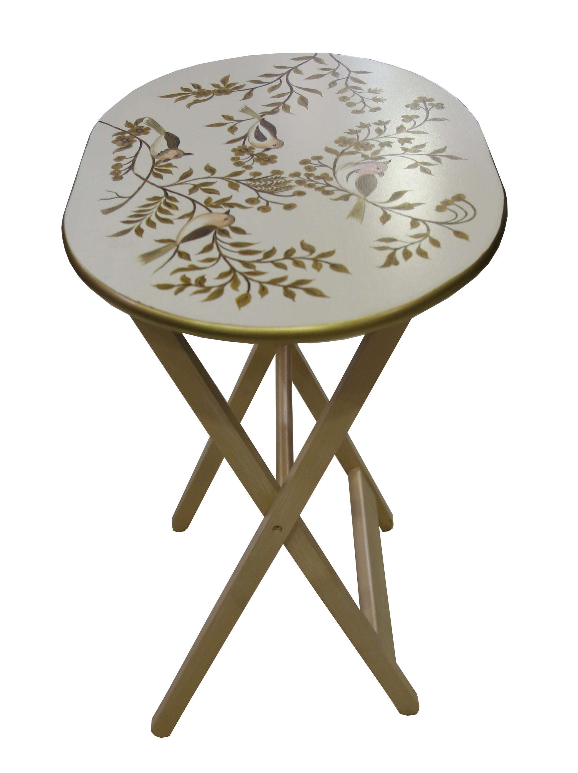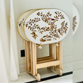 A unique round-top design with intricately carved floral patterns makes this nest stand out.