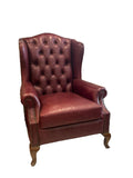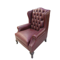 This chair blends regal tufting with polished wooden arms and legs. The rich maroon leather finish adds classic appeal. A luxurious fit for traditional decor or formal lounges.