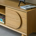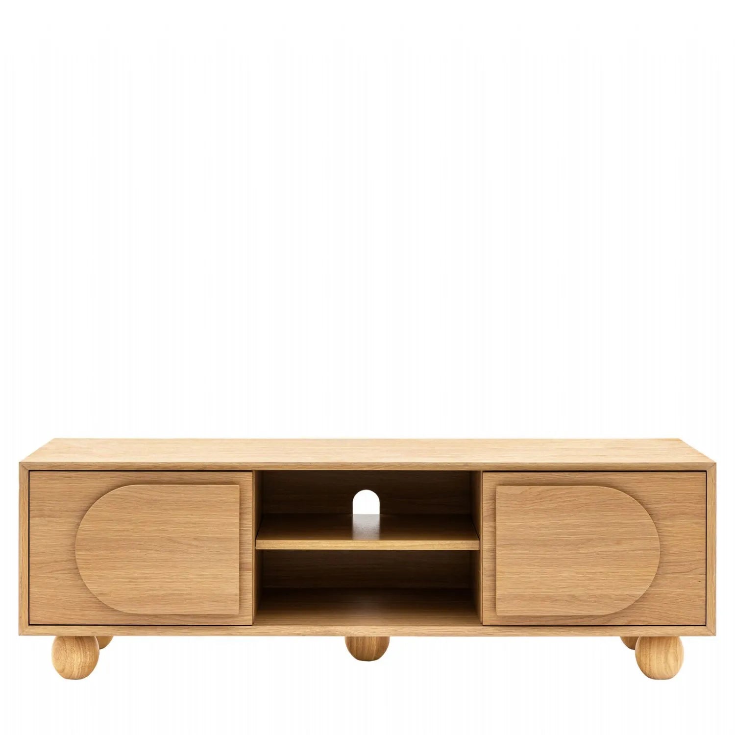 Constructed from natural wood, this unit stands out with sliding doors and bold legs. The rustic charm and boho feel make it both functional and decorative. Suits tropical, bohemian, or vintage modern decor themes.