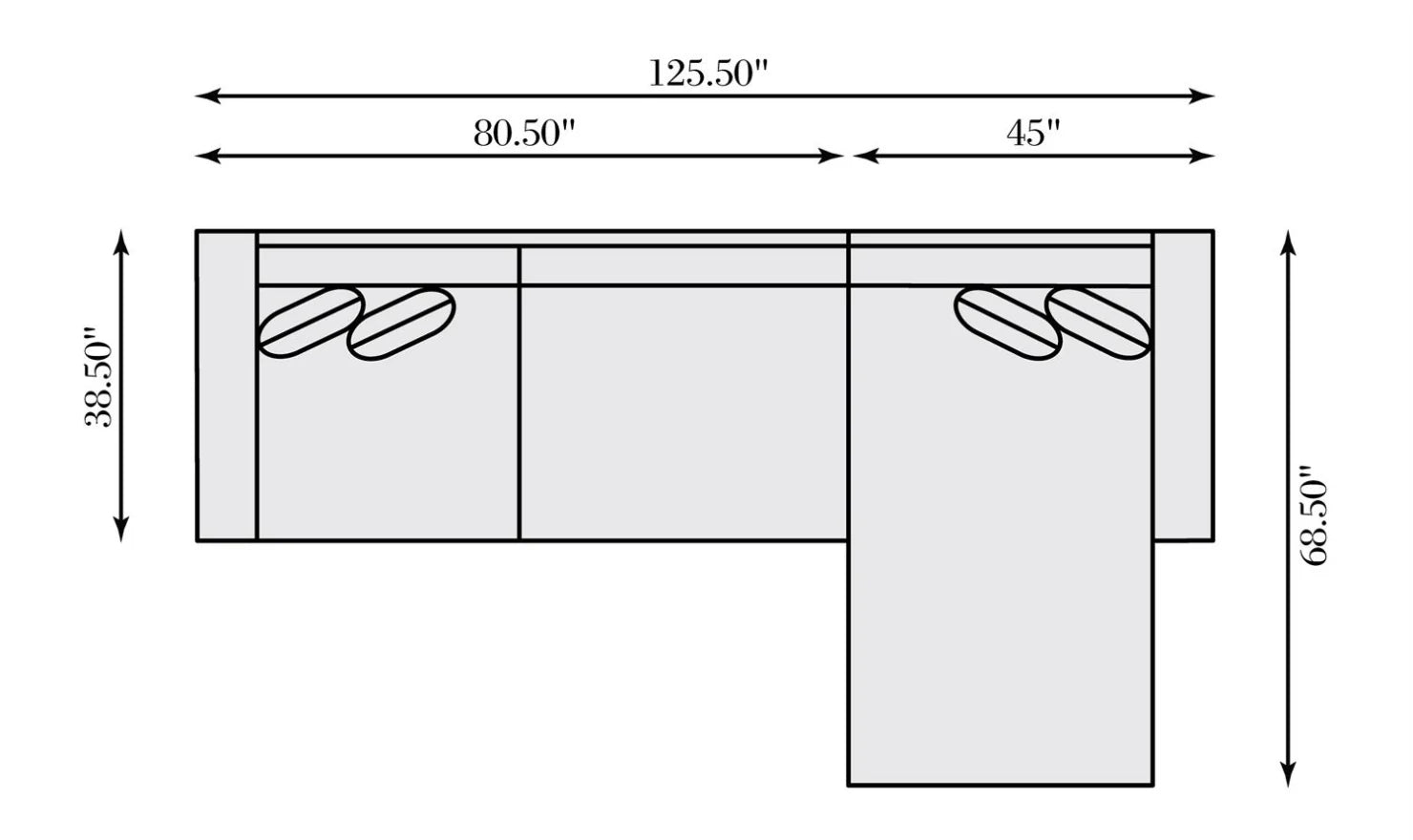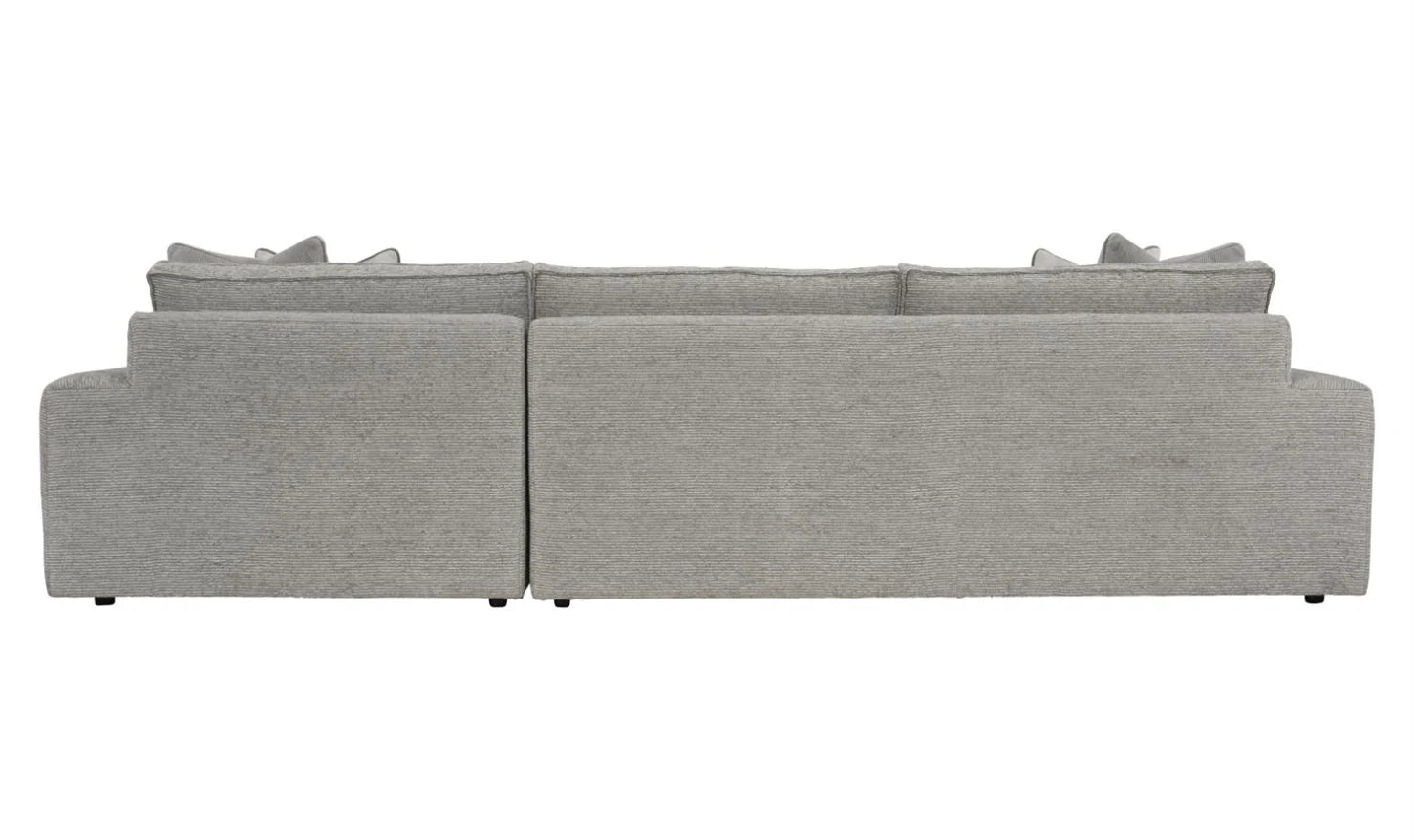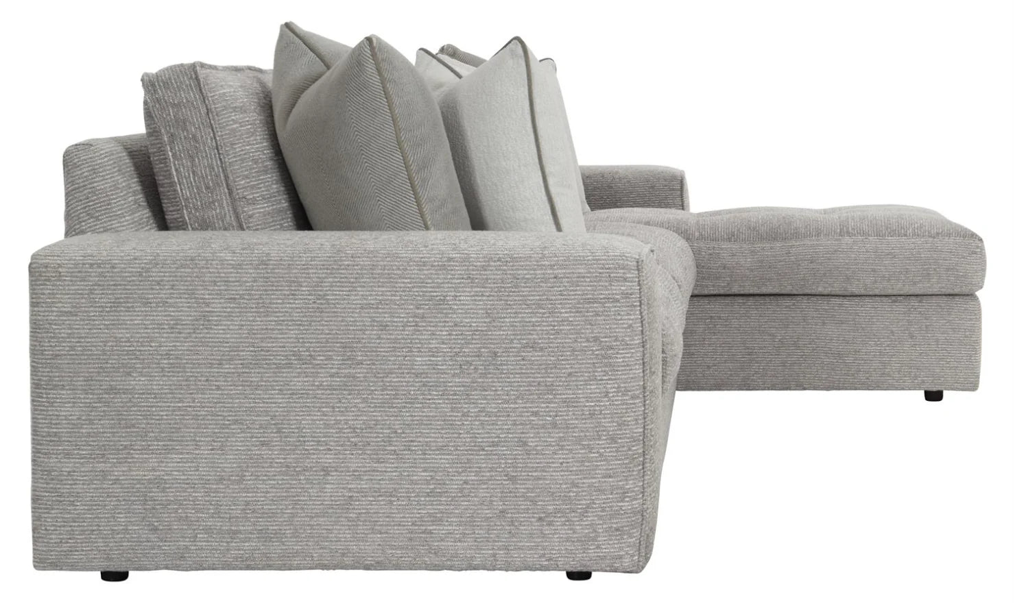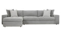 This sectional is covered in a soft heather gray fabric with a wide chaise and structured arms. The design is transitional, blending into both casual and formal living areas. Back and seat cushions are plush but supportive. Neutral tone makes it easy to coordinate.