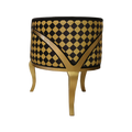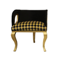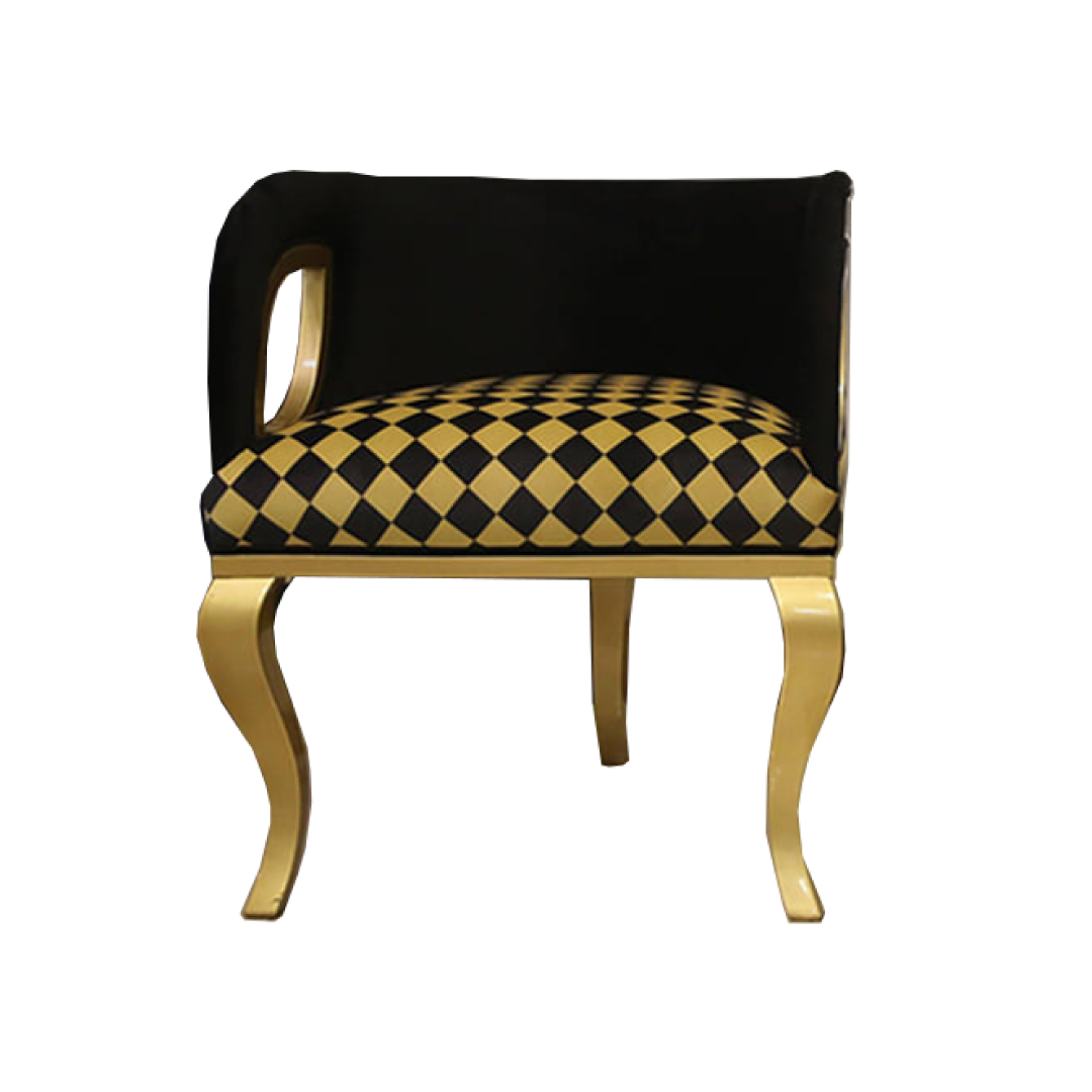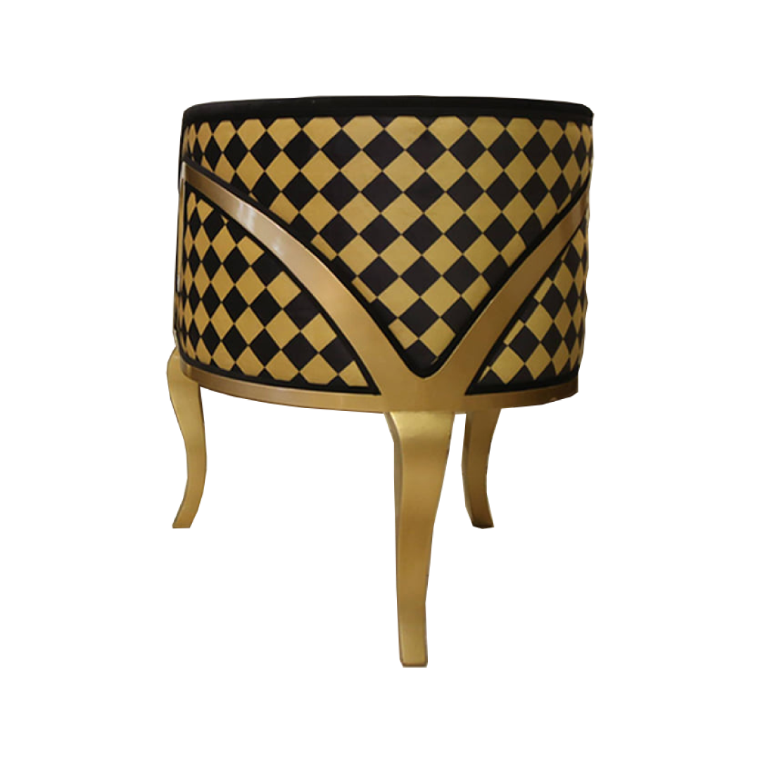 This striking three-leg wooden chair features a bold gold finish that radiates elegance. Its sculptural form and rich metallic sheen make it a perfect statement piece for luxe interiors.