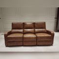 This three-seater recliner sofa in soft cognac leather blends luxury with everyday comfort. Its generously padded seats and sleek silhouette enhance lounging experiences. The timeless leather finish fits both classic and modern interiors.