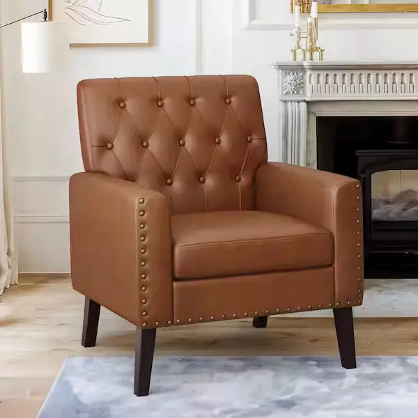 This modern chair features button tufting and elegant short arms. It offers a cozy yet upright seating position. Perfect for compact urban interiors or studios.