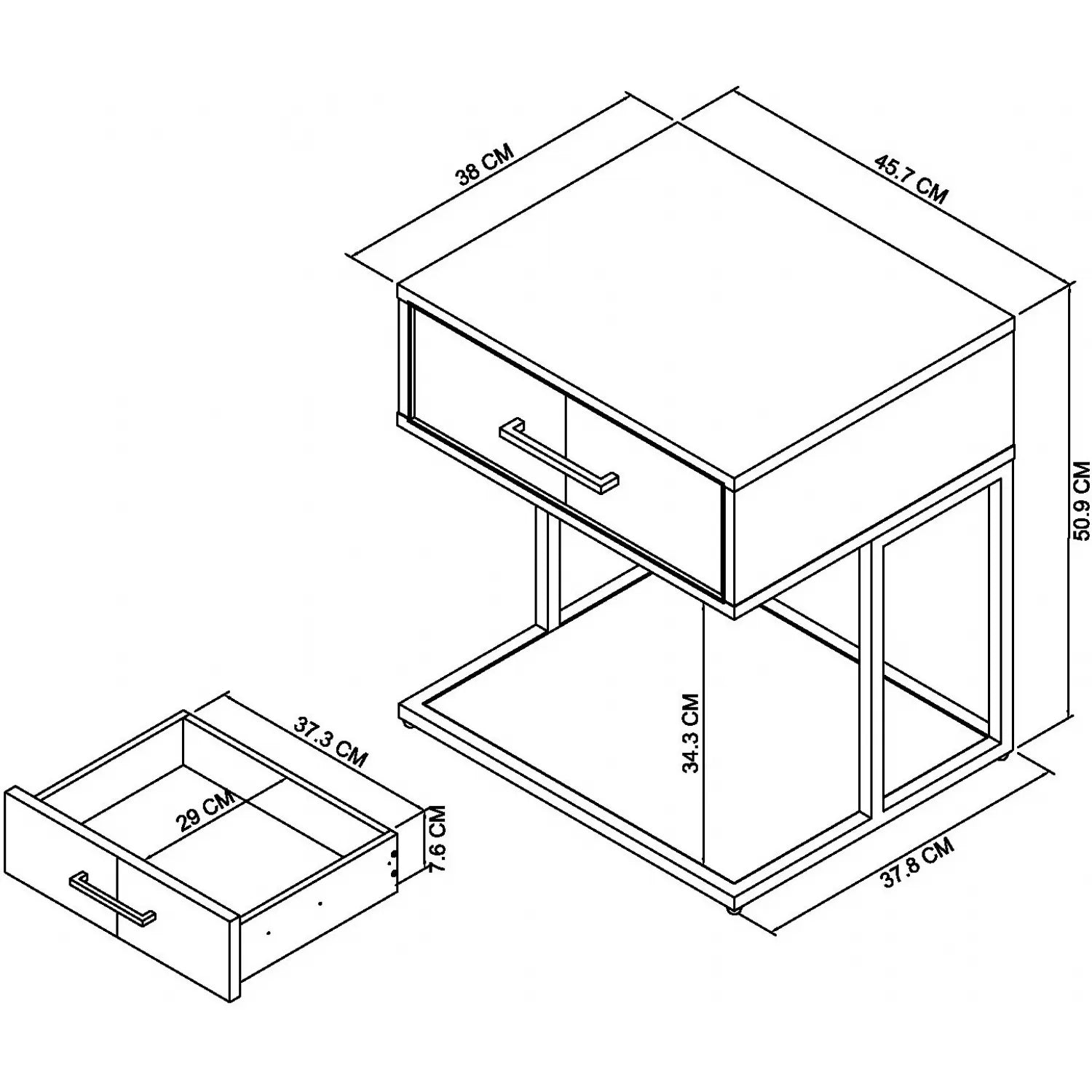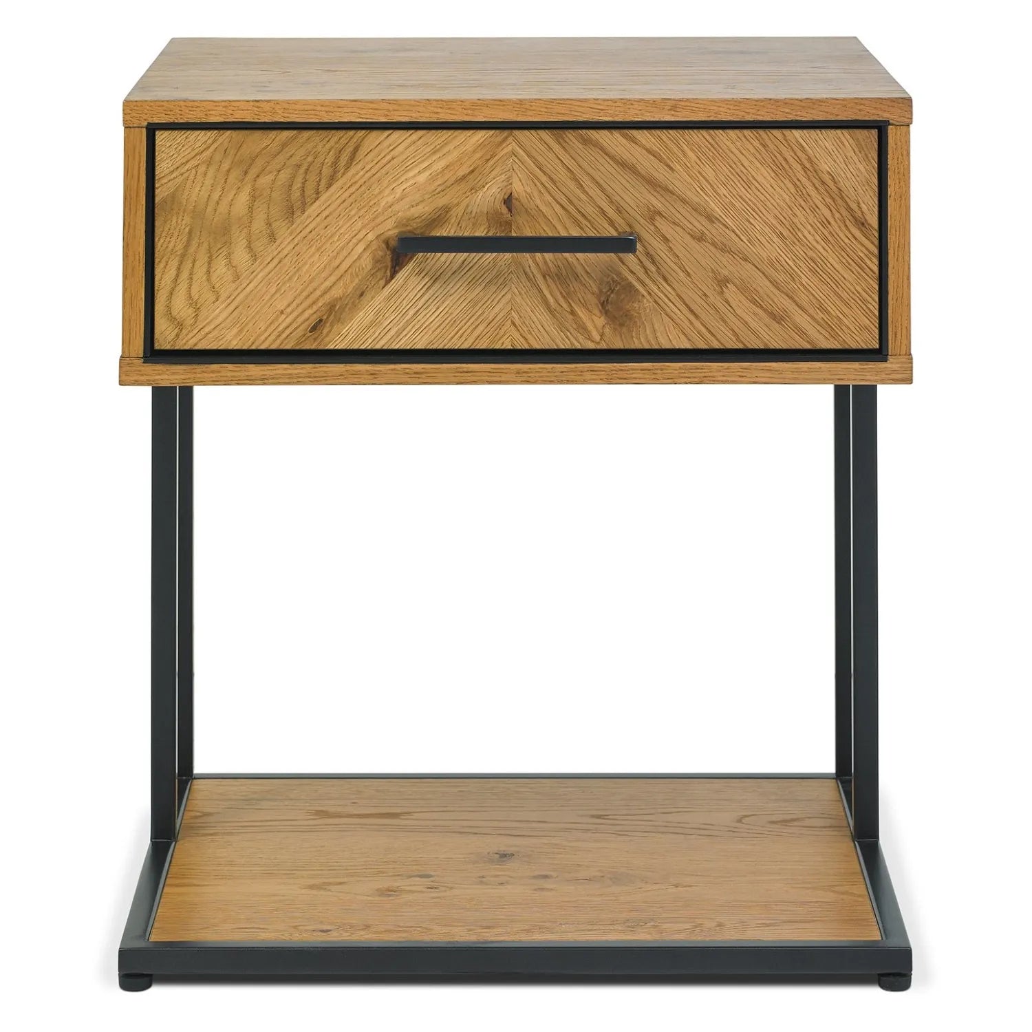 Blending natural oak tones with clean geometric lines. Smooth-glide drawer and a solid build ensure everyday functionality.